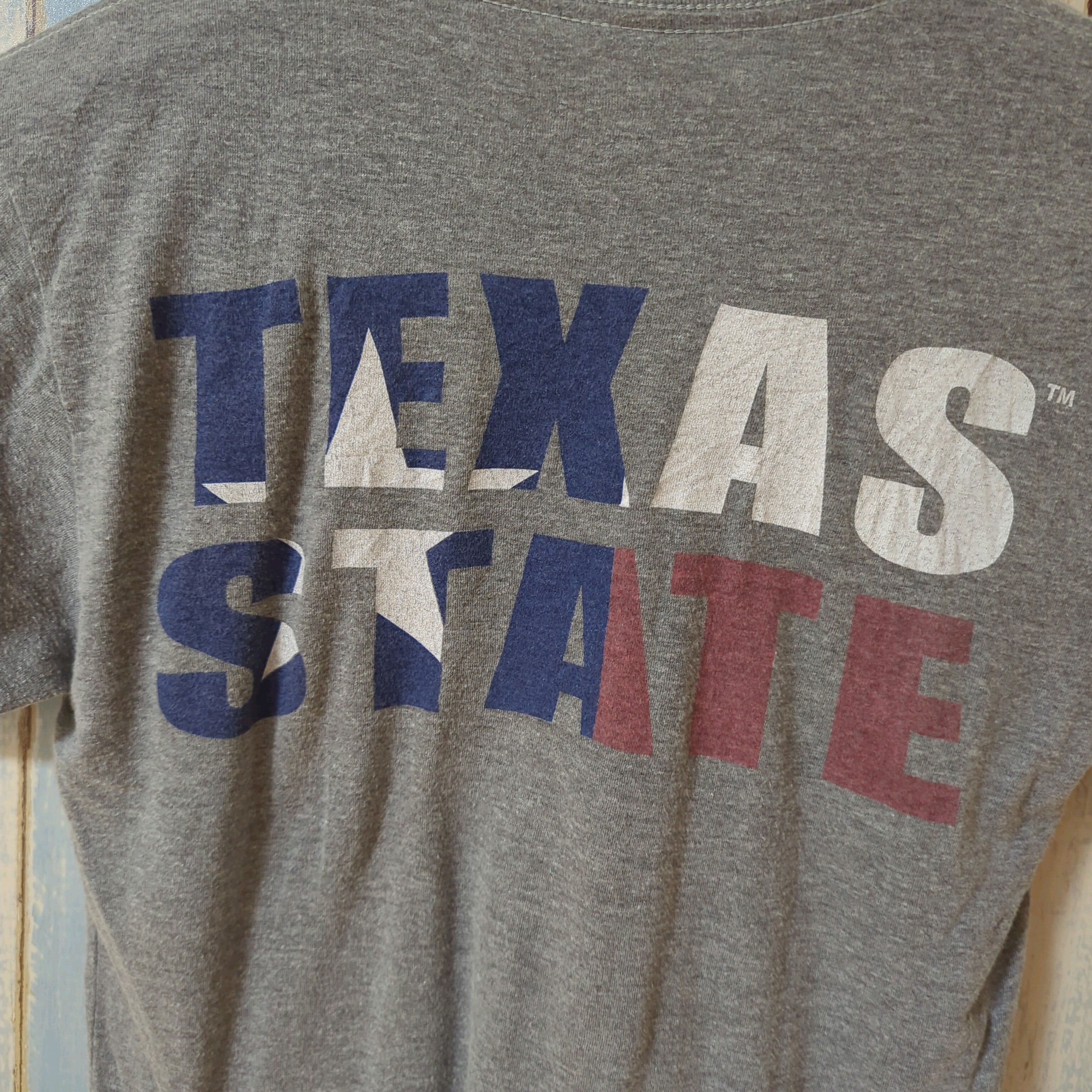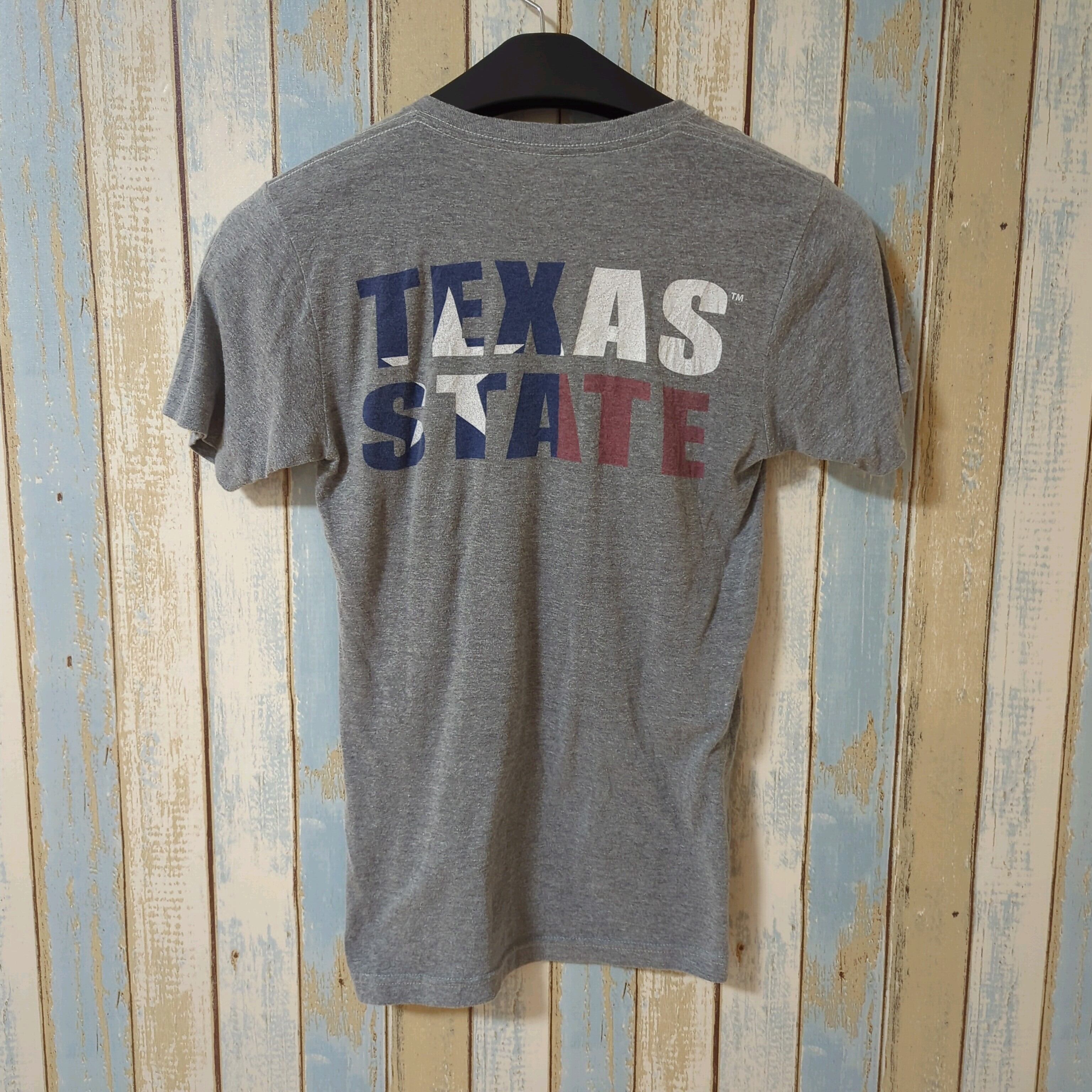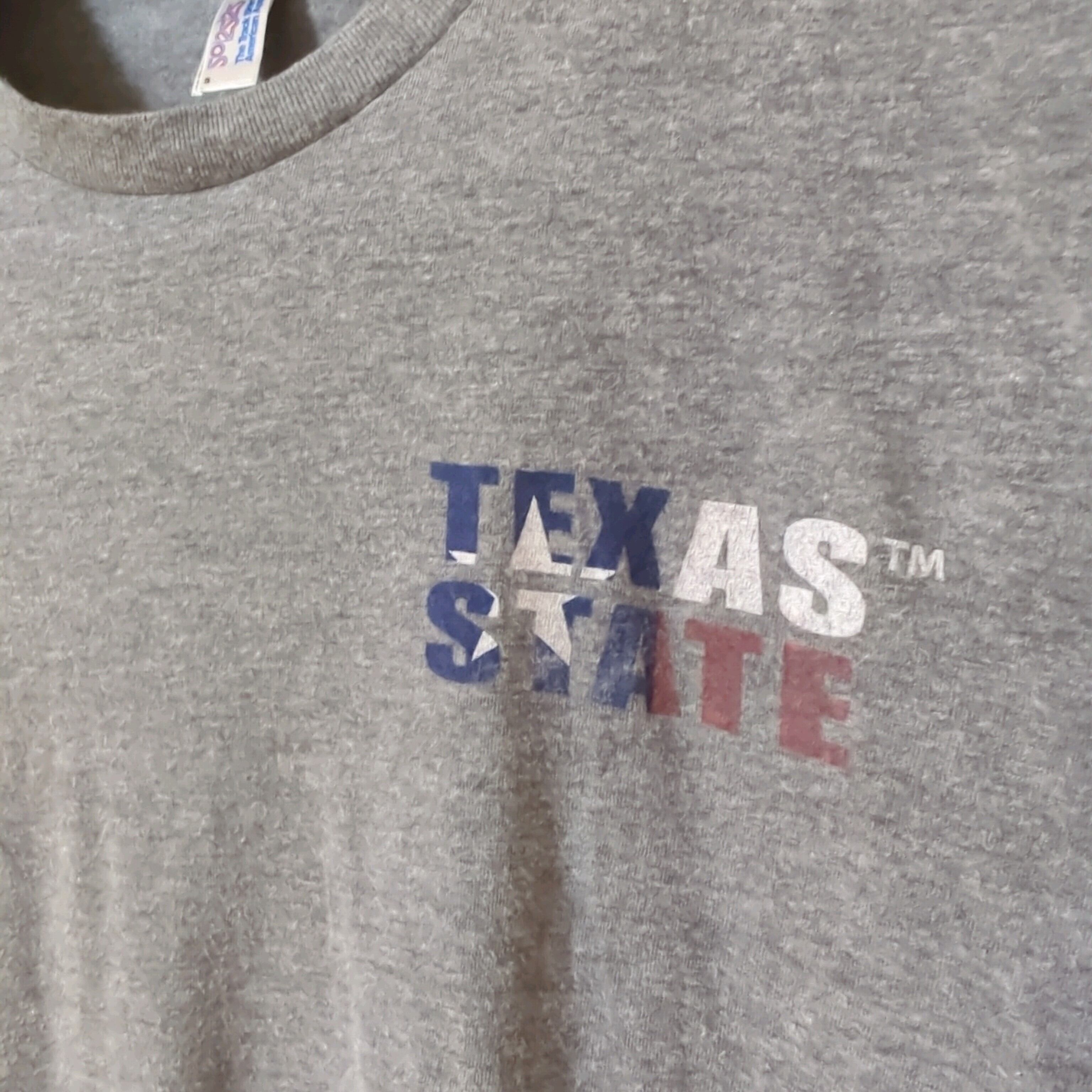 アメリカ製のグレーのTexas State Tシャツ、シンプルでスタイリッシュなデザイン。