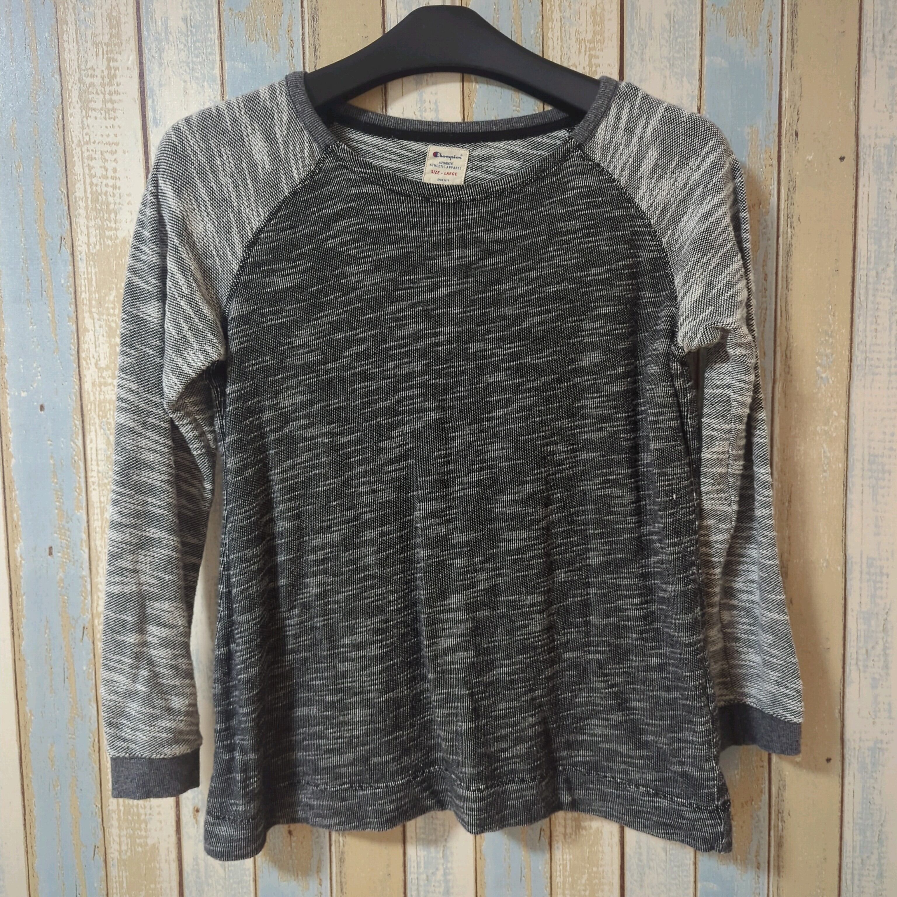 Championのグレー系ラグランスリーブ長袖カットソー。